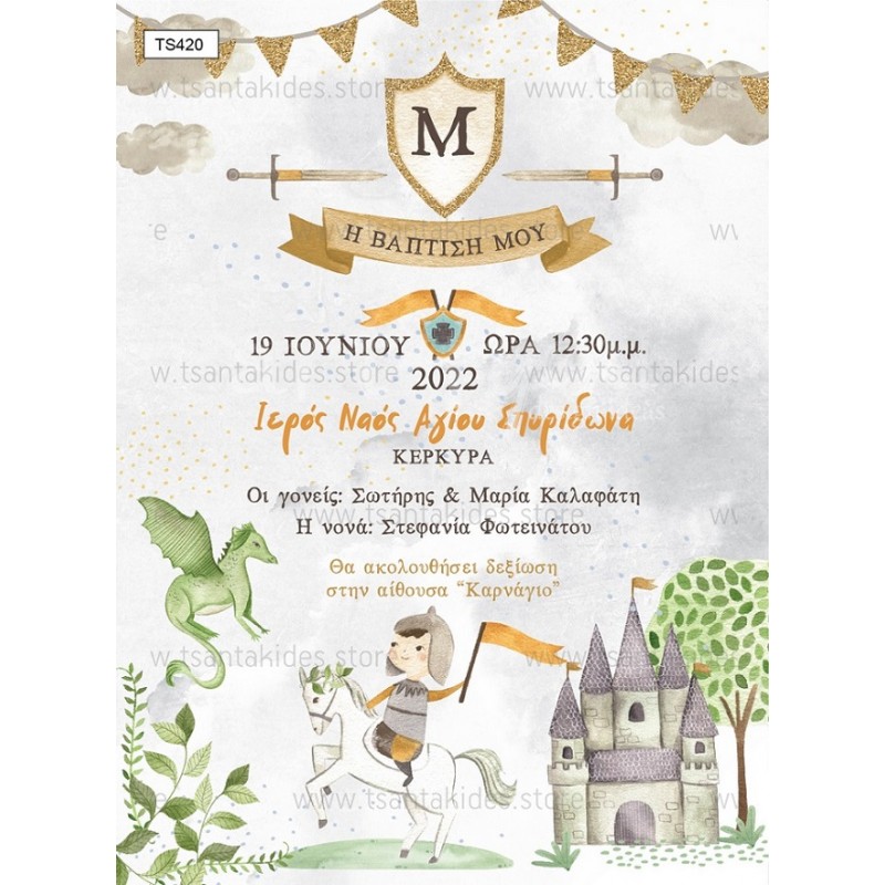 Προσκλητήριο βάπτισης για αγόρι με θέμα Ιππότης