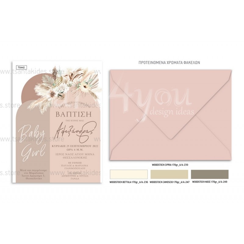 Προσκλητήριο βάπτισης για κορίτσι με θέμα Baby Boho