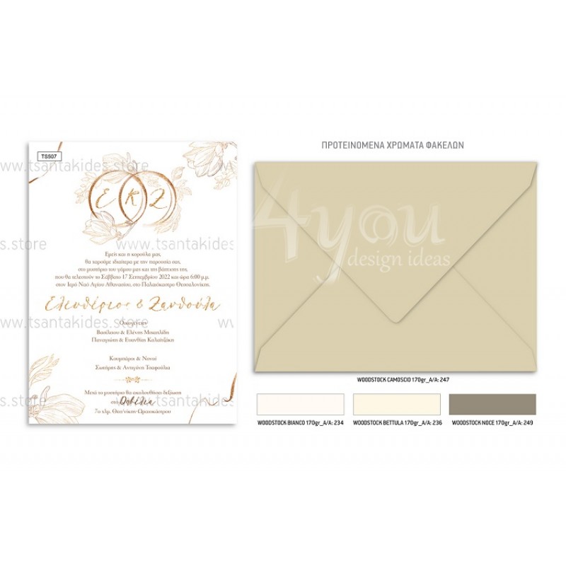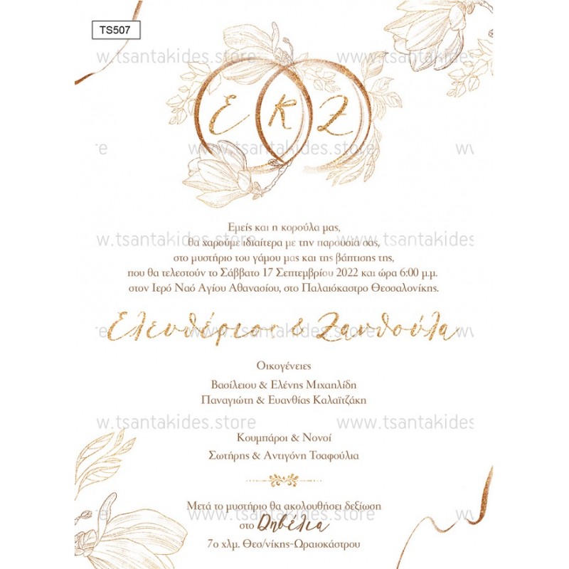 Προσκλητήριο γάμου – βάπτισης με θέμα Floral Golden Rings