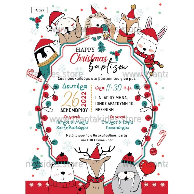 Προσκλητήριο βάπτισης Winter Cute Animals