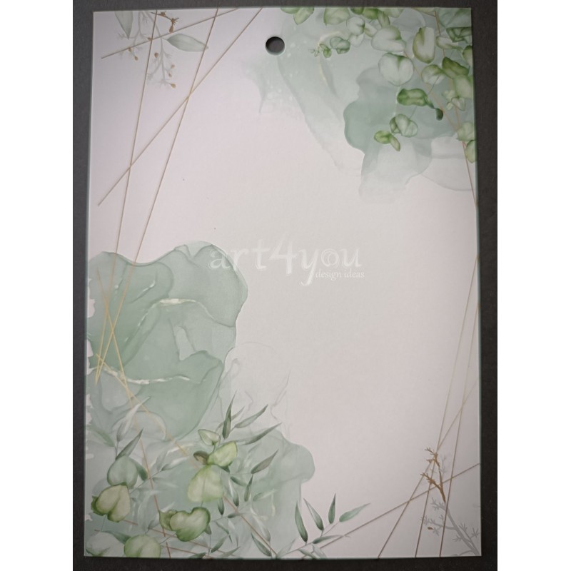 Η πρώτη κάρτα όπου αναφέρονται τα στοιχεία της πρόσκλησης είναι τυπωμένη σε ριζόχαρτο 150γρ. και η δεύτερη κάρτα με φύλλα είναι τυπωμένη σε velvet χαρτί 350γρ.
