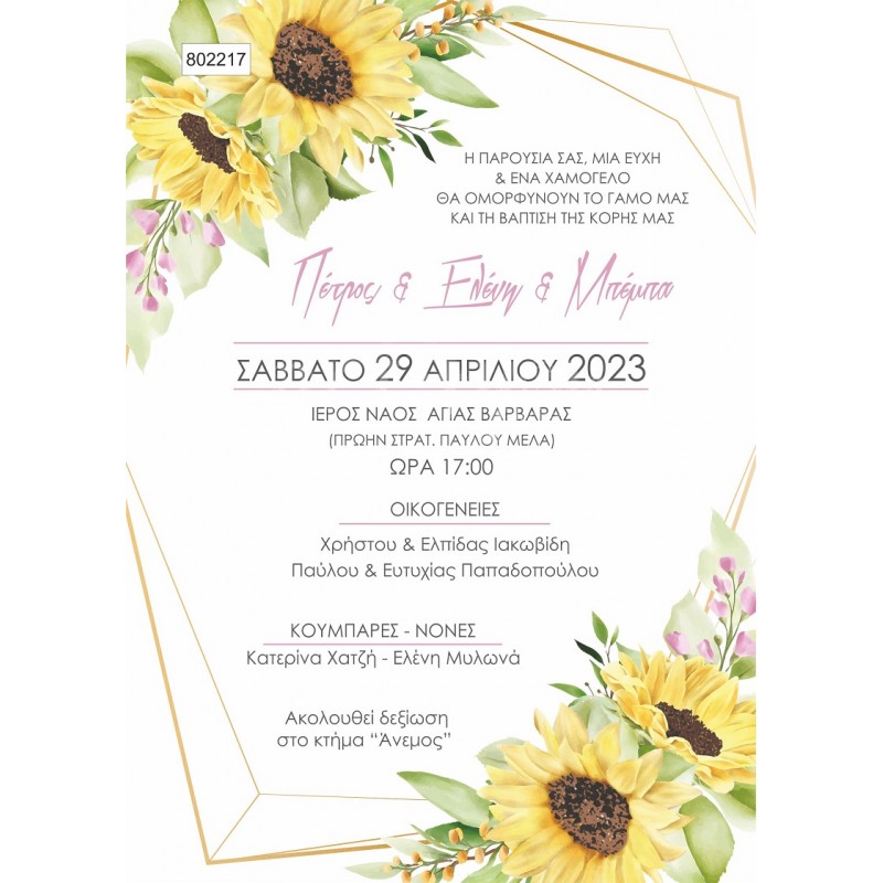 Οικονομικό Προσκλητήριο Γάμου Βάπτισης Sunflower