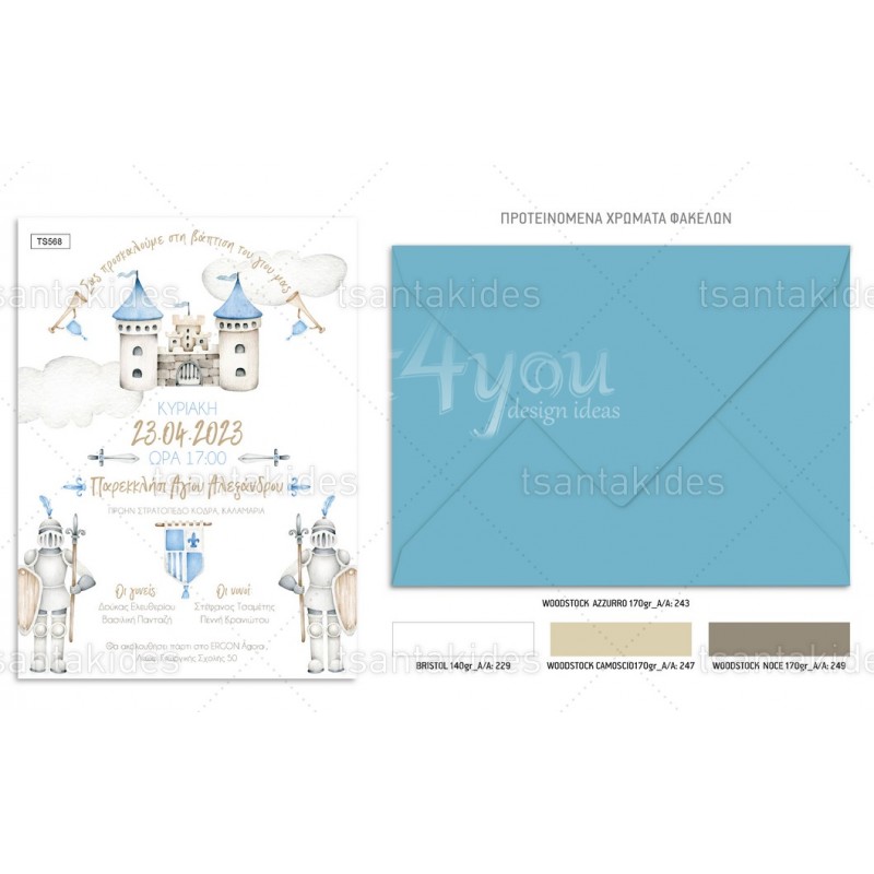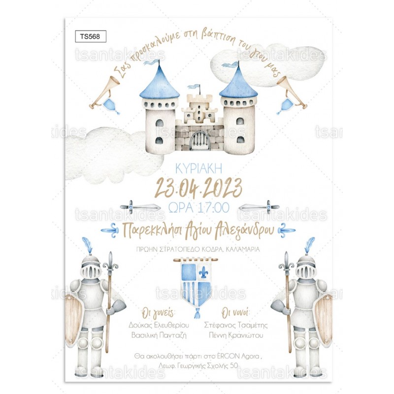 Προσκλητήριο βάπτισης για αγόρι με θέμα Κnight of a Castle