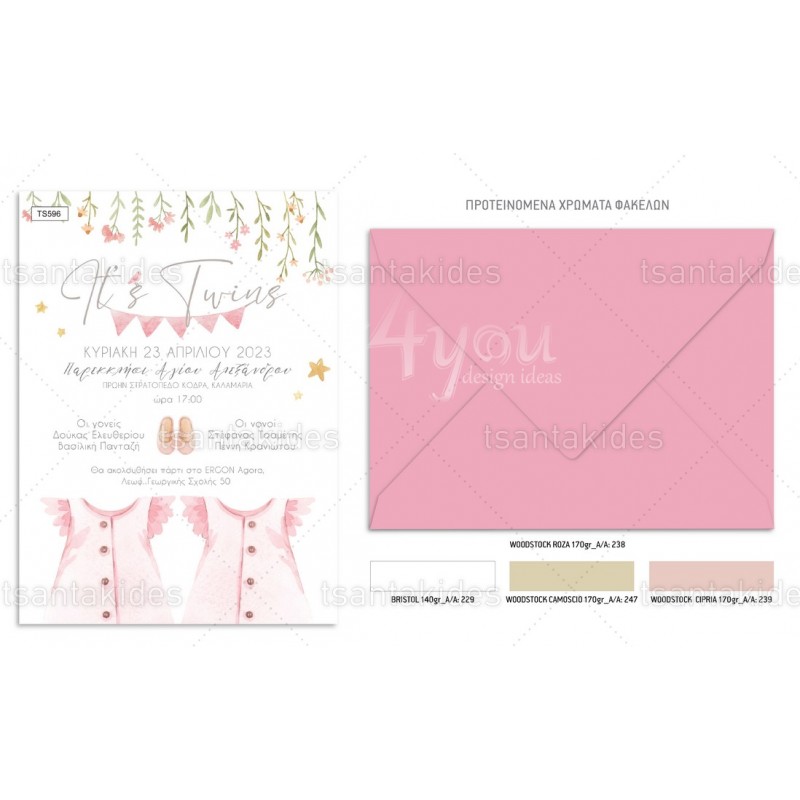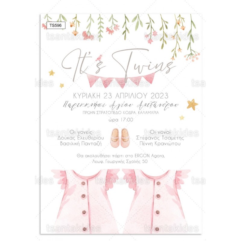 Προσκλητήριο βάπτισης για δίδυμα με θέμα Girls Nursery Clothes