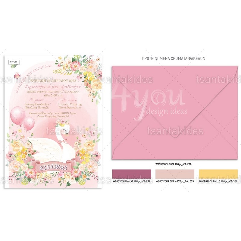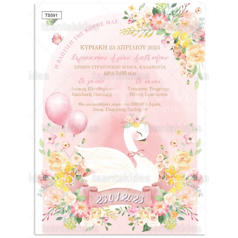 Προσκλητήριο βάπτισης για κορίτσι με θέμα Swan
