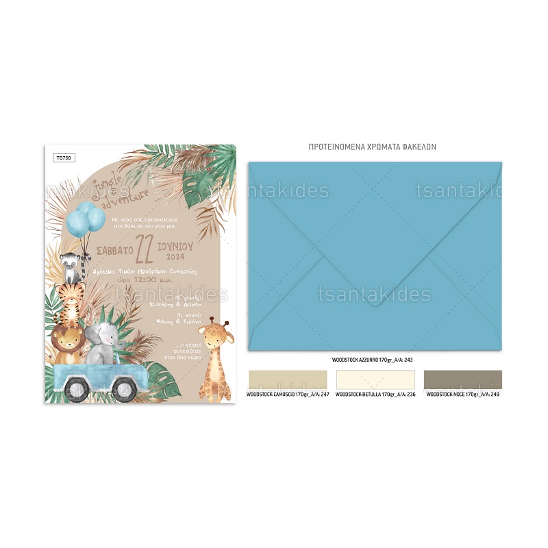Προσκλητήριο βάπτισης για αγόρι με θέμα Boho safari jungle