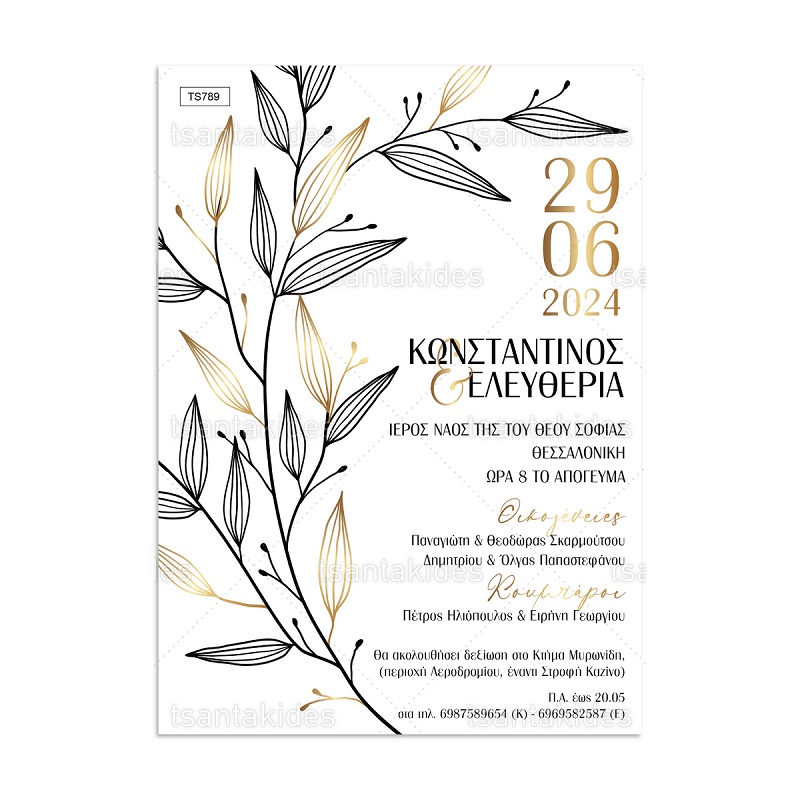 Προσκλητήριο γάμου με θέμα Gold black branch