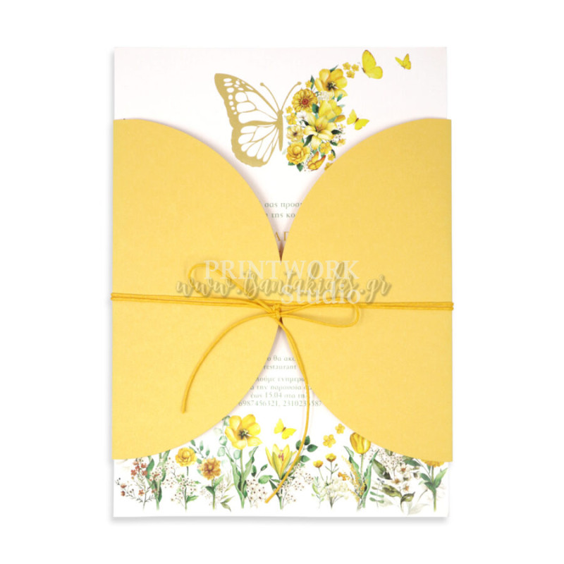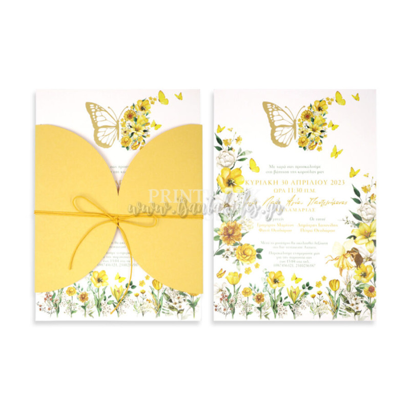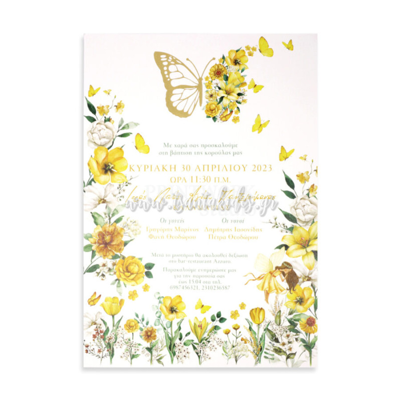 Προσκλητήριο βάπτισης Πεταλούδα και Λουλούδια