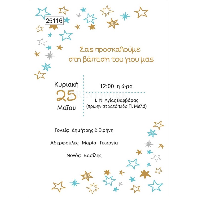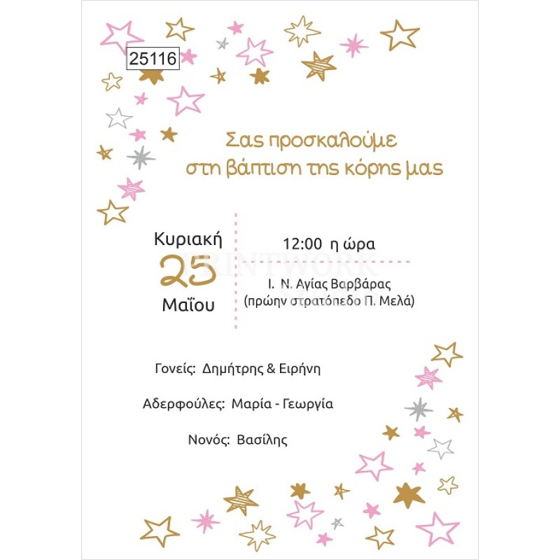 Οικονομικό προσκλητήριο Αστεράκια σε Ροζ ή Γαλάζιο