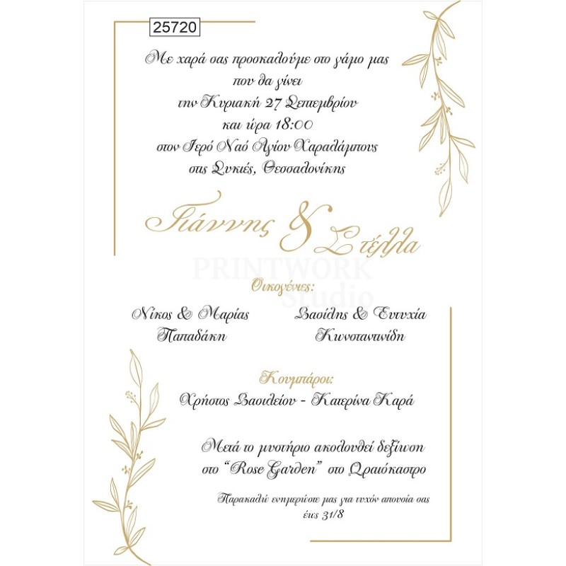 Η τιμή περιλαμβάνει το προσκλητήριο, την εκτύπωση και τον Φ.Π.Α.