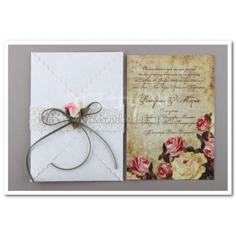 Προσκλητήριο γάμου ρομαντικό Vintage