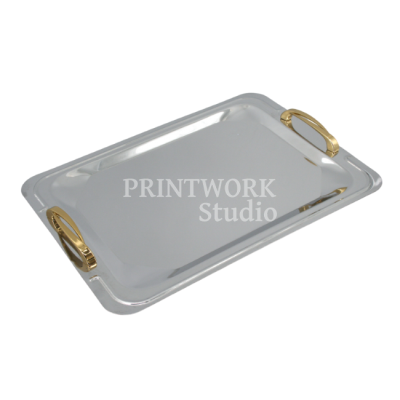 Δίσκος inox με χρυσά χερούλια