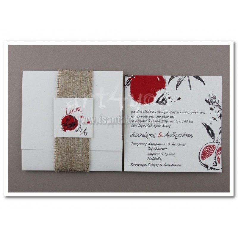 Στην τιμή δεν περιλαμβάνετε η κορδέλα, αν επιθυμείτε να αγοράσετε το προσκλητήριο όπως στην φωτογραφία (ενδέχετε η κορδέλα να μην είναι ακριβώς η ίδια λόγω έλειψης διαθεσιμότητας) παρακαλώ επικοινωνήστε μαζί μας.