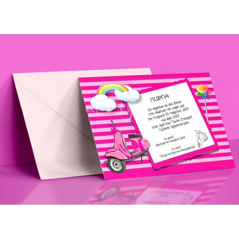 Προσκλητήριο βάπτισης για κορίτσι Vespa
