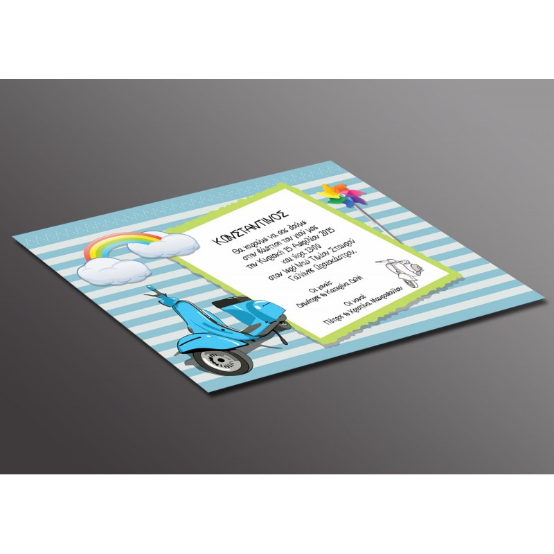 Προσκλητήριο βάπτισης Vintage Vespa