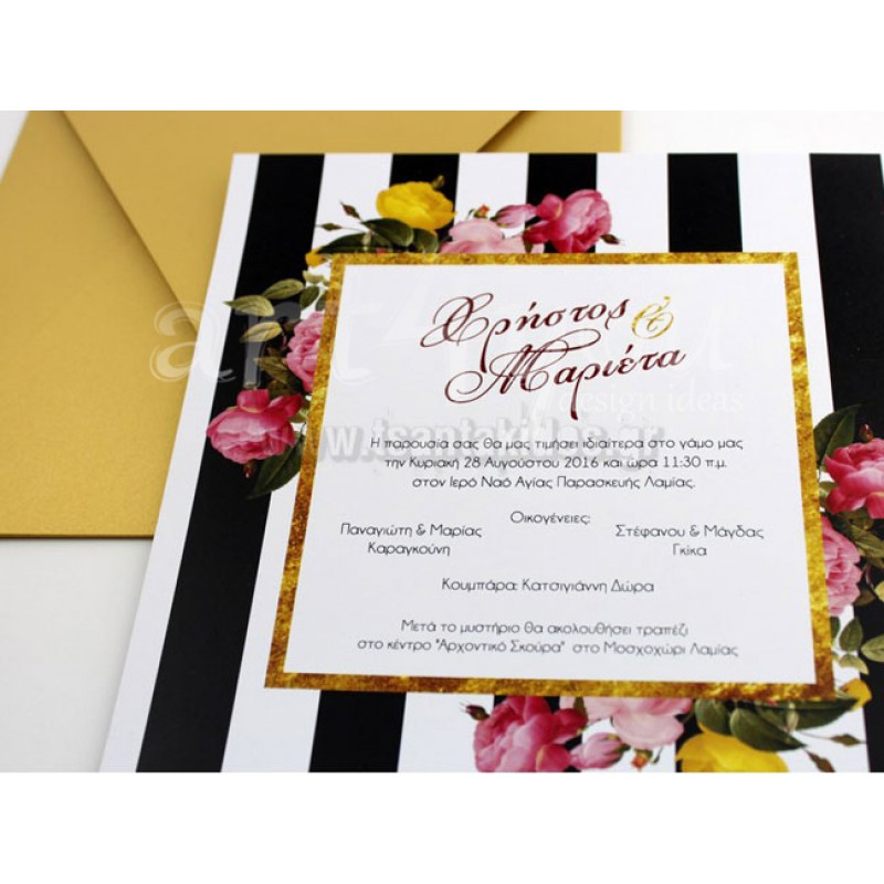 Η τιμή περιλαμβάνει το προσκλητήριο, τον φάκελο, τη φόδρα, την εκτύπωση και τον Φ.Π.Α.