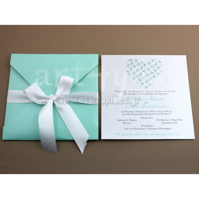 Στην τιμή δεν περιλαμβάνετε η κορδέλα στον φάκελο, αν επιθυμείτε να αγοράσετε το προσκλητήριο όπως στην φωτογραφία (ενδέχετε η κορδέλα να μην είναι ακριβώς η ίδια λόγω έλειψης διαθεσιμότητας) παρακαλώ επικοινωνήστε μαζί μας.