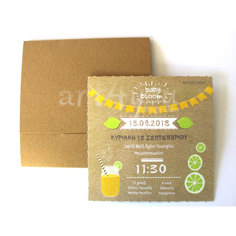 Προσκλητήριο Βάπτισης Retro Λεμονάδα