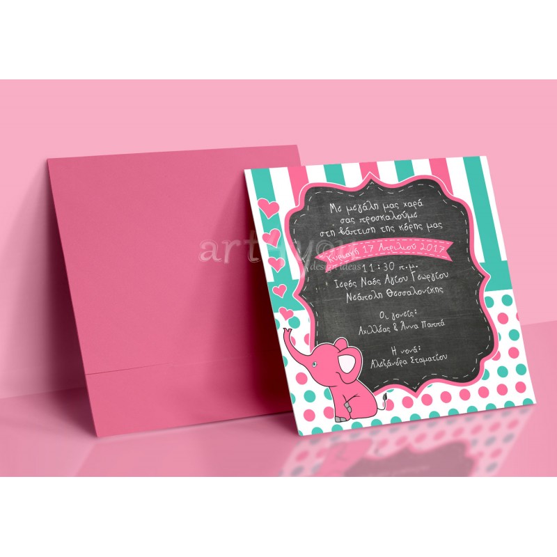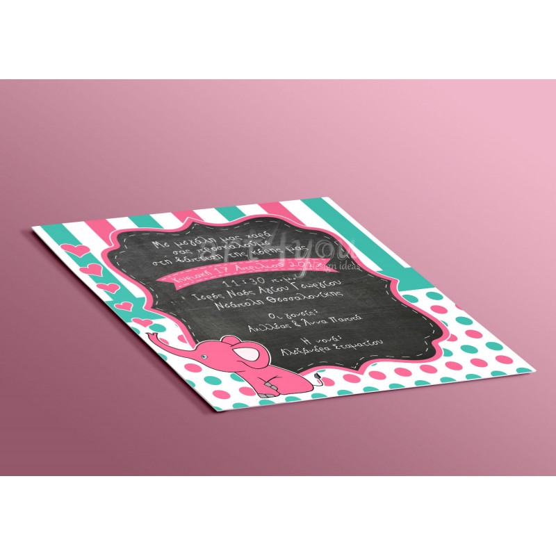 Προσκλητήριο Βάπτισης ελεφαντάκι