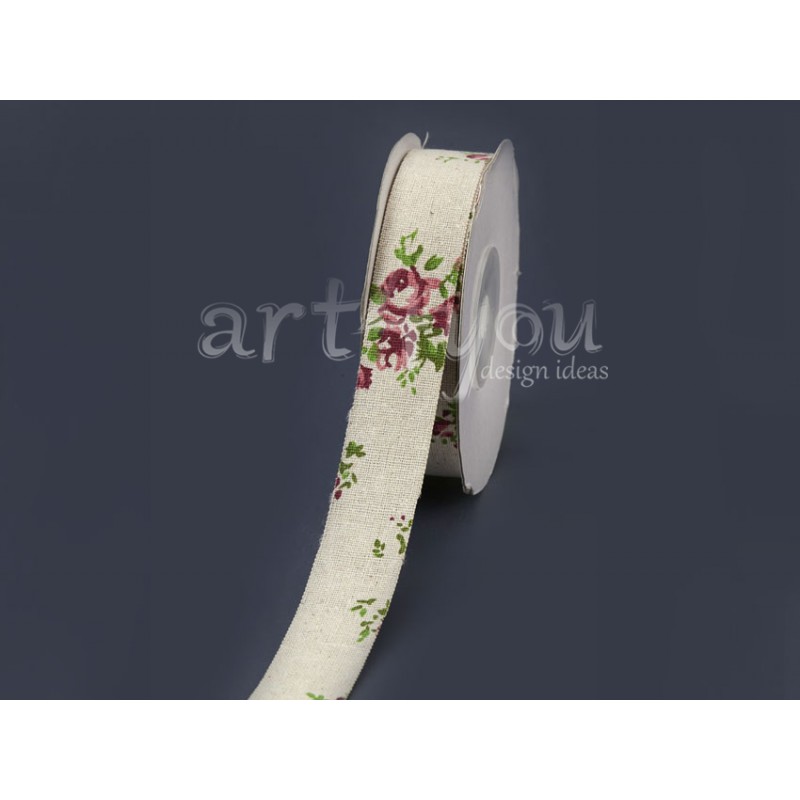 Κορδέλα Λινή με λουλούδι 4εκ. ΚΛΤ2 Διαστάσεις: 2,5εκ. * 20 γιάρδες (18.28 μέτρα)