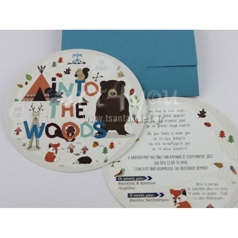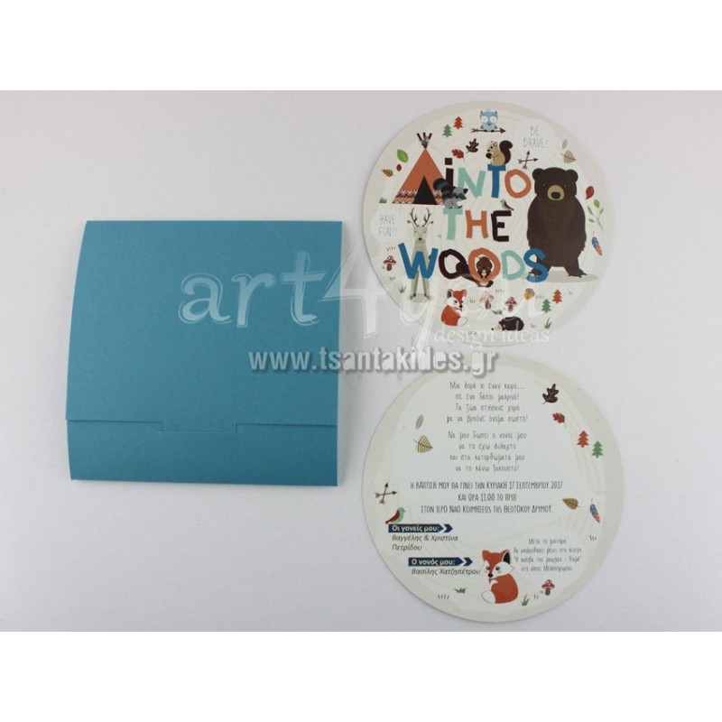 Προσκλητήριο βάπτισης με θέμα Ζωάκια του Δάσους