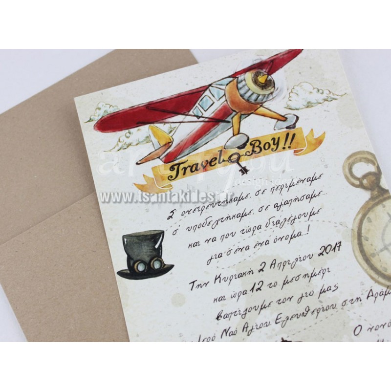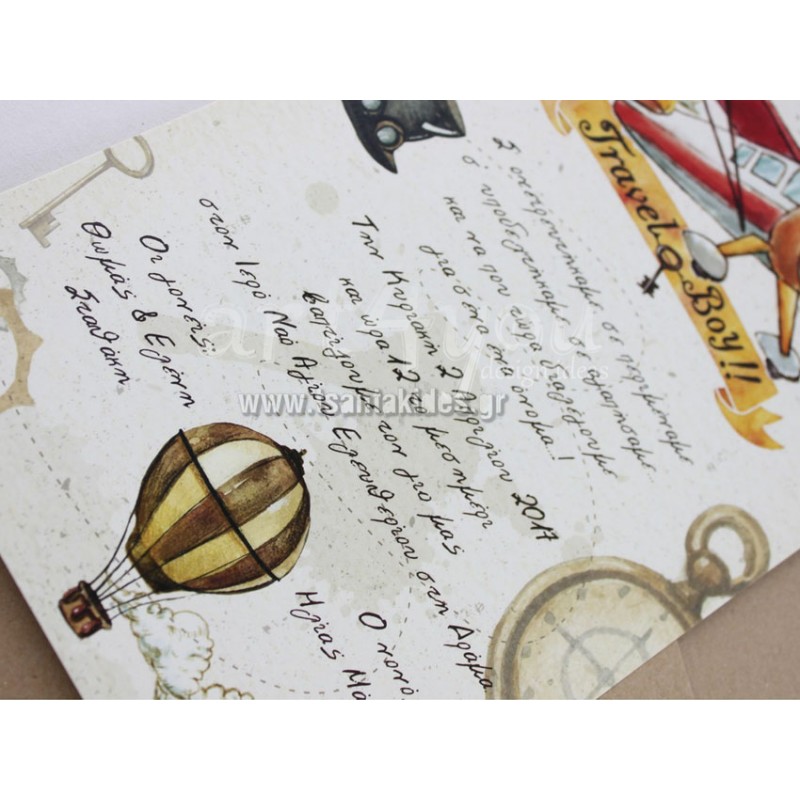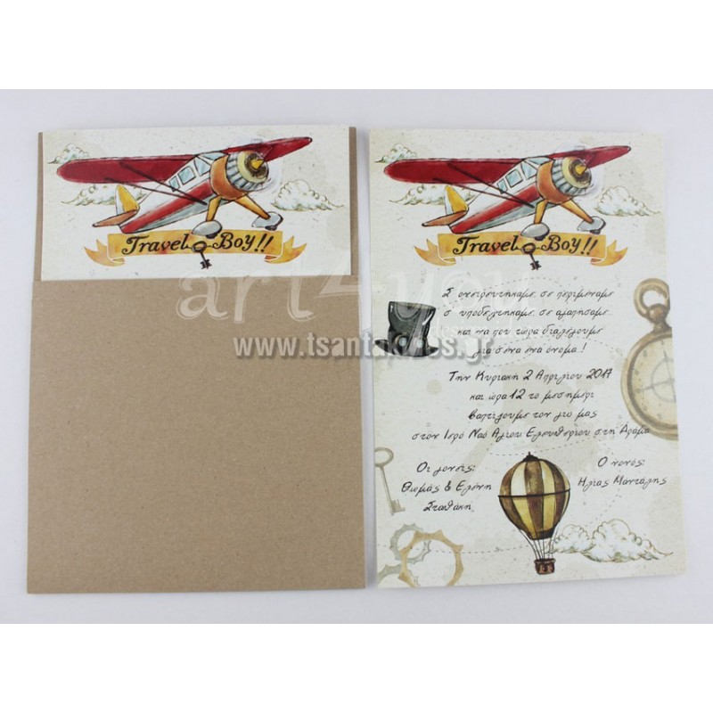 Προσκλητήριο βάπτισης Ταξιδιώτης, Travel Boy 1619