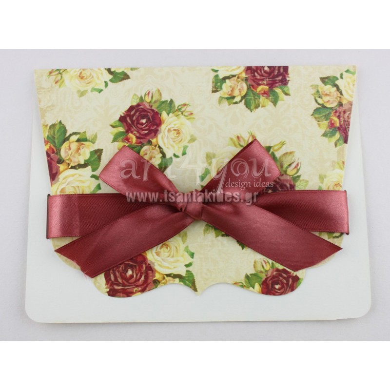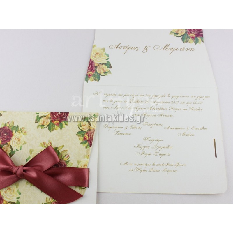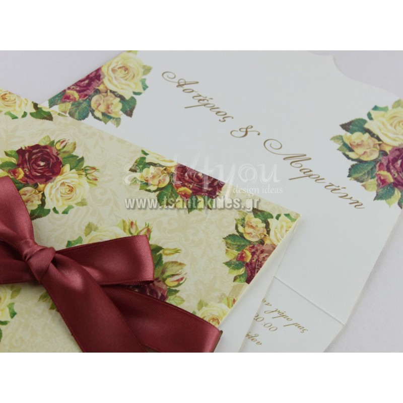 Προσκλητήριο Γάμου Vintage με Λουλούδια δίπτυχο