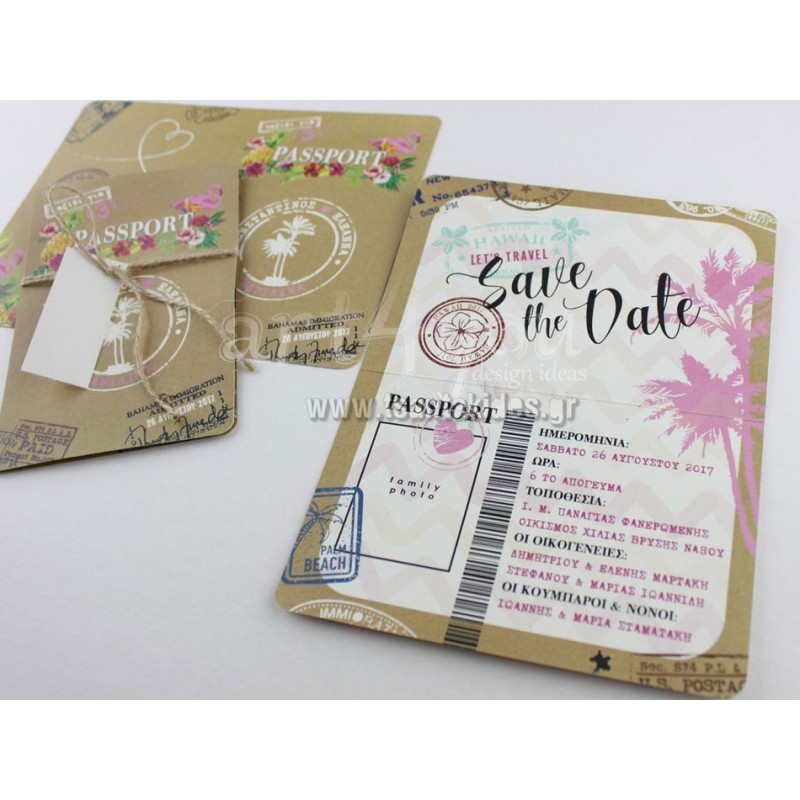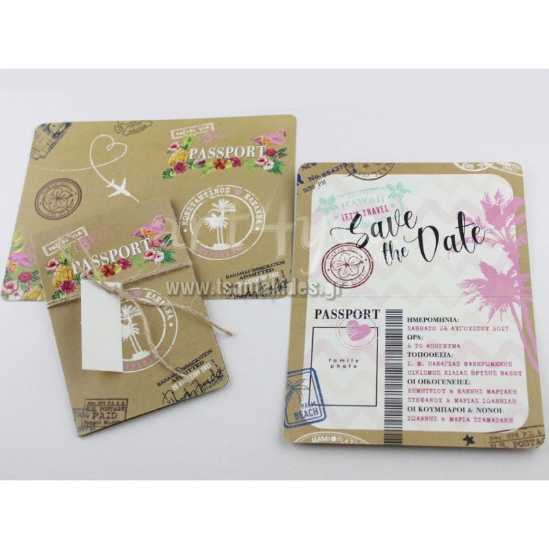 Προσκλητήριο Γαμου βάπτισης δίπτυχο Passport, Ταξίδι για 3