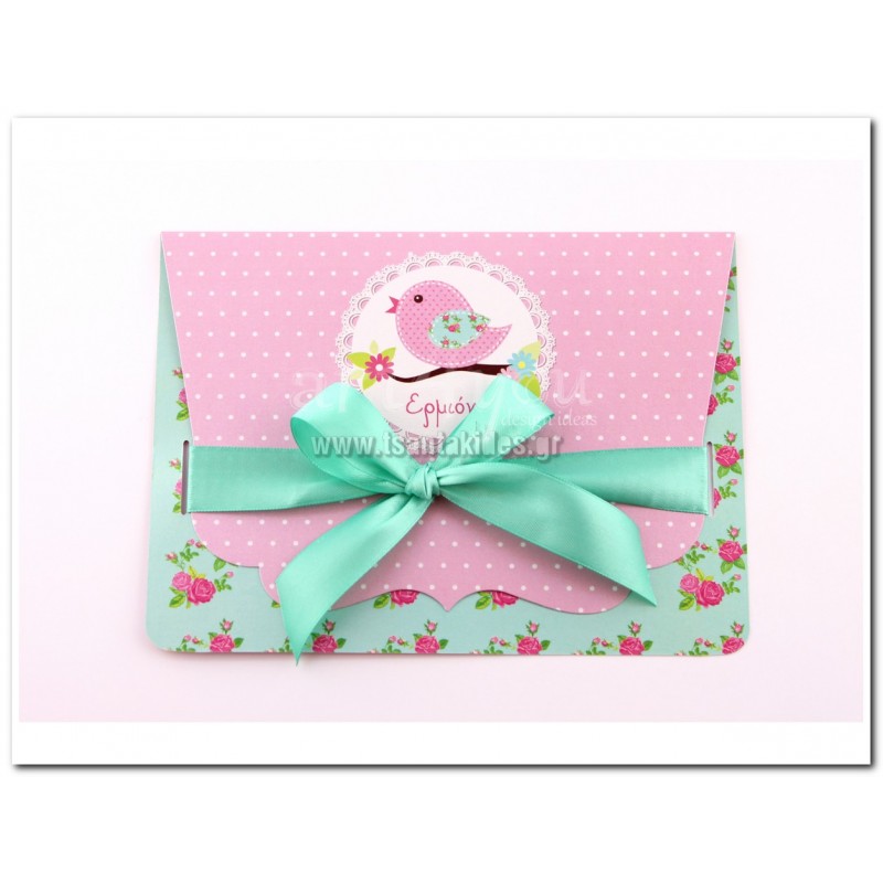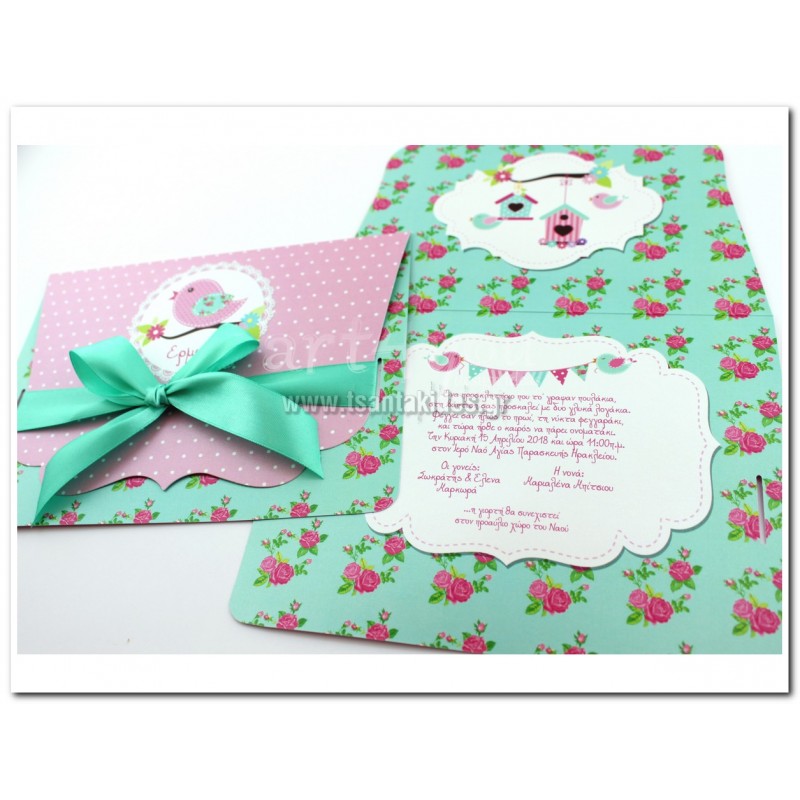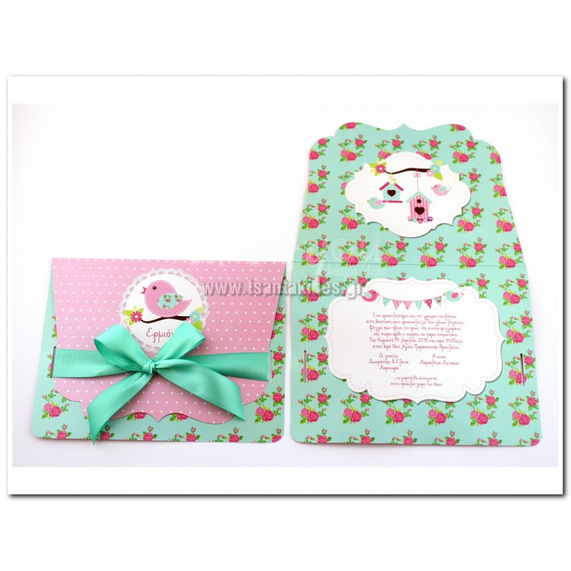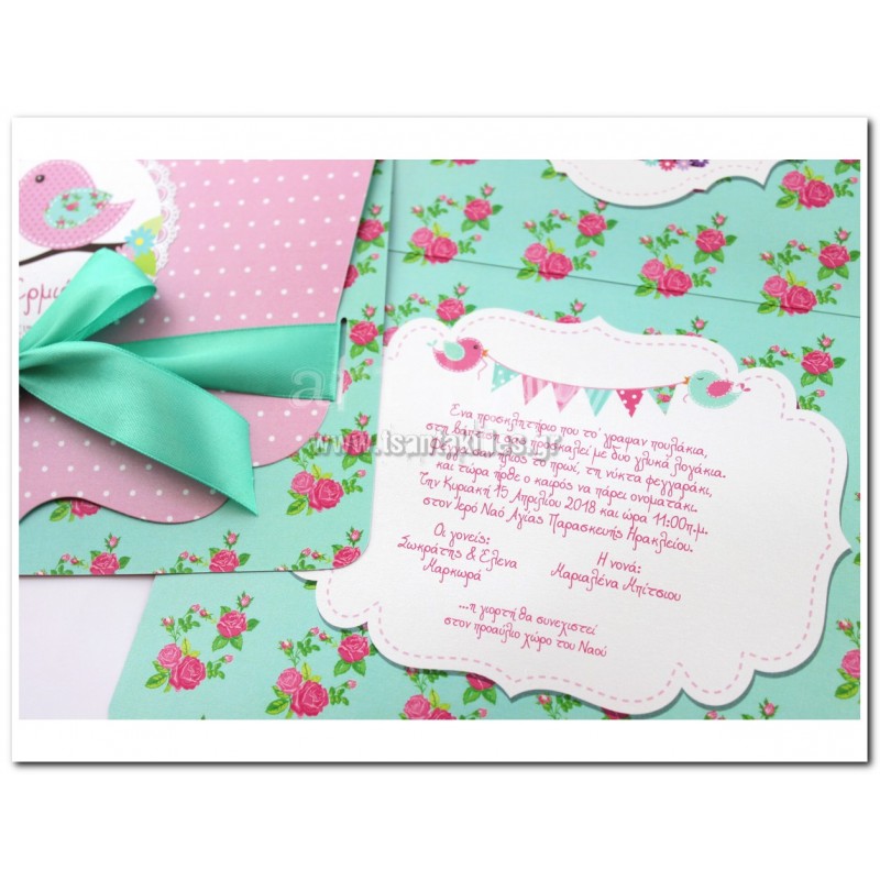 Προσκλητήριο Βάπτιση Πουλάκι Vintage