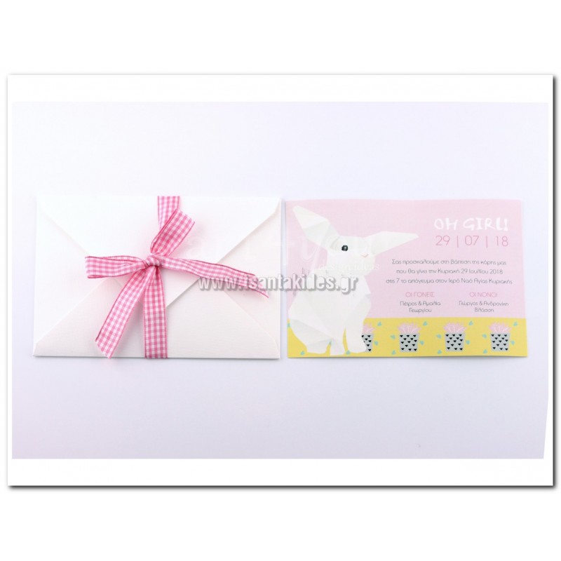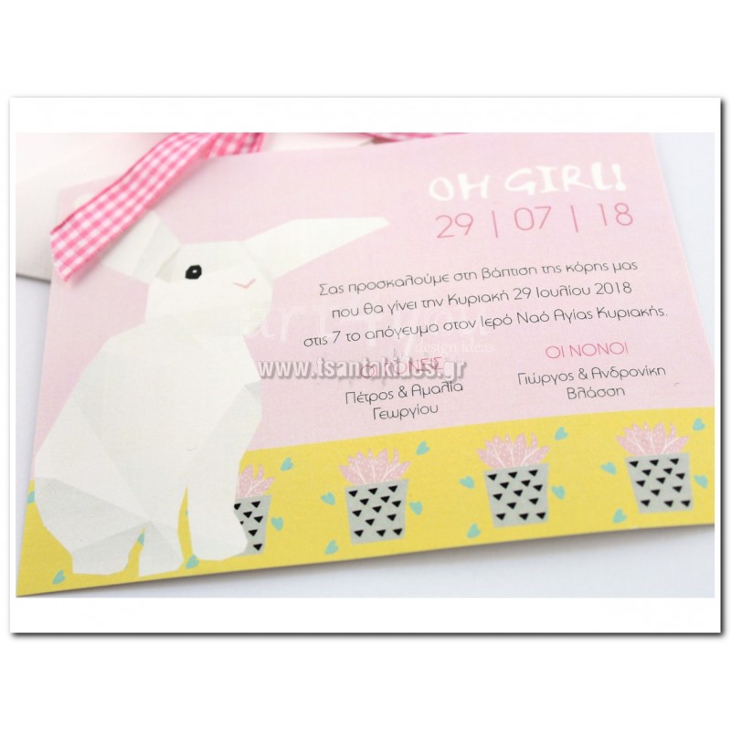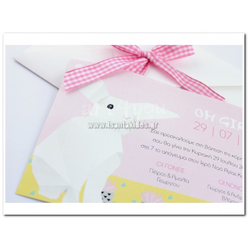Προσκλητήριο Βάπτισης Κουνελάκι Geometric